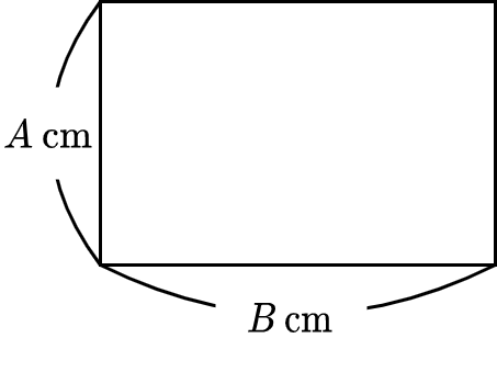 세로 길이가 A cm, 가로 길이가 B cm인 직사각형의 넓이를 cm2 단위로 구하고, 단위 (cm2)를 생략하여 출력한다.