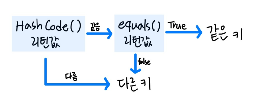 객체가 달라도 동등 객체라면 같은 키로 중복 저장되지 않도록 하기 위함이다.