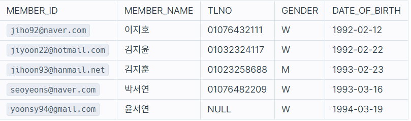때문에 'TO_CHAR(DATE_OF_BIRTH, 'YYYY-MM-DD') AS DATE_OF_BIRTH' 형식으로 지정해서 출력해주었다.