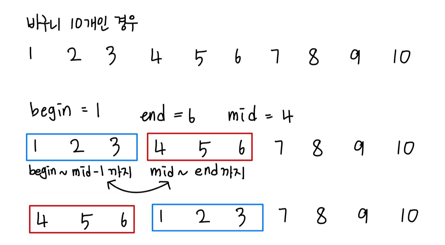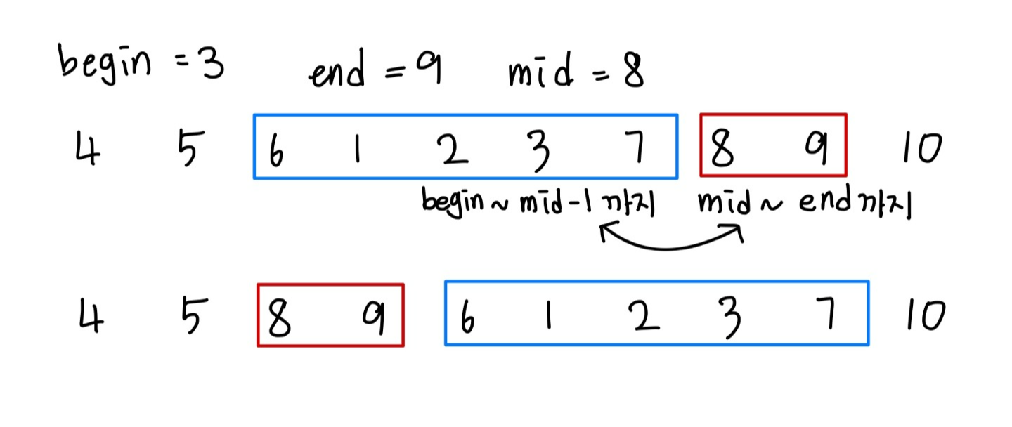 begin ~ mid-1 와 mid ~ end까지의 바구니 위치를 바꾸면된다.